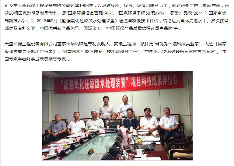 中國高新技術(shù)網(wǎng)發(fā)布:《關(guān)注:解碼科技創(chuàng)新》——新鄉(xiāng)市天盛環(huán)保“超強(qiáng)氧化還原廢水處理技術(shù)”